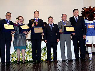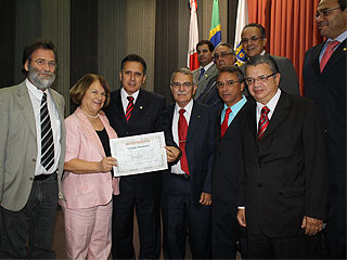 Recebeu também a homenagem a coordenadora do Programa Novos Rumos, desembargadora Jane Ribeiro Silva. A reunião solene foi realizada no Salão Nobre da Sede Social do Barro Preto. O presidente Cláudio Costa foi representado pelo desembargador Wanderley Salgado de Paiva. Na mesma sessão, foram homenageados o ministro João Otávio de Noronha e o e conselheiro federal por OAB/MG, professor Raimundo Cândido Júnior, e ainda diversos grupos desportistas do clube, diretores e ex-diretores das Sedes Sociais, conselheiros que completaram cinco décadas ininterruptas como Conselheiro do Clube. Essa é a homenagem máxima concedida pelo clube e é entregue somente a personalidades que se destacaram em algum segmento ou que prestaram relevantes serviços ao clube. Até o momento, somente o ex-governador de Minas, Aécio Neves, e ex-presidentes do Cruzeiro, receberam essa homenagem. Assessoria de Comunicação Institucional - Ascom 17/06/2011 - Desembargador é homenageado pelo Centro de Comunidade Luso-Brasileira